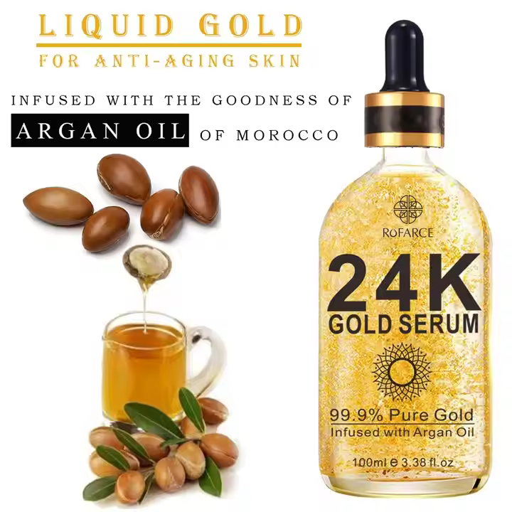 Elevate your skincare routine with our Anti-Aging 24K Gold Serum with Vitamin C, a luxurious treatment designed to rejuvenate and illuminate. Infused with real 24K gold flakes, this serum enhances radiance, boosts circulation, and delivers a touch of indulgence to your daily regimen. Vitamin C works powerfully to brighten the skin, fade dark spots, and stimulate collagen production for a firmer, more youthful appearance. The lightweight, fast-absorbing formula penetrates deeply to hydrate, smooth fine lines, and improve skin texture without clogging pores. Ideal for all skin types, including mature or dull skin, this serum leaves your complexion glowing, revitalized, and silky soft. Free from parabens, sulfates, and artificial fragrances, it’s a clean, cruelty-free formula that delivers visible results. Turn back the clock and experience radiant, golden skin—because age is just a number, and glowing skin is forever.