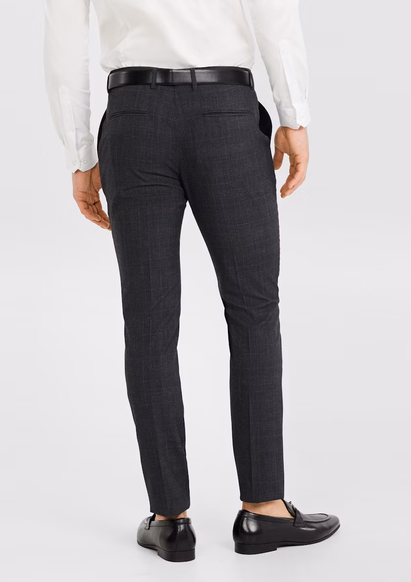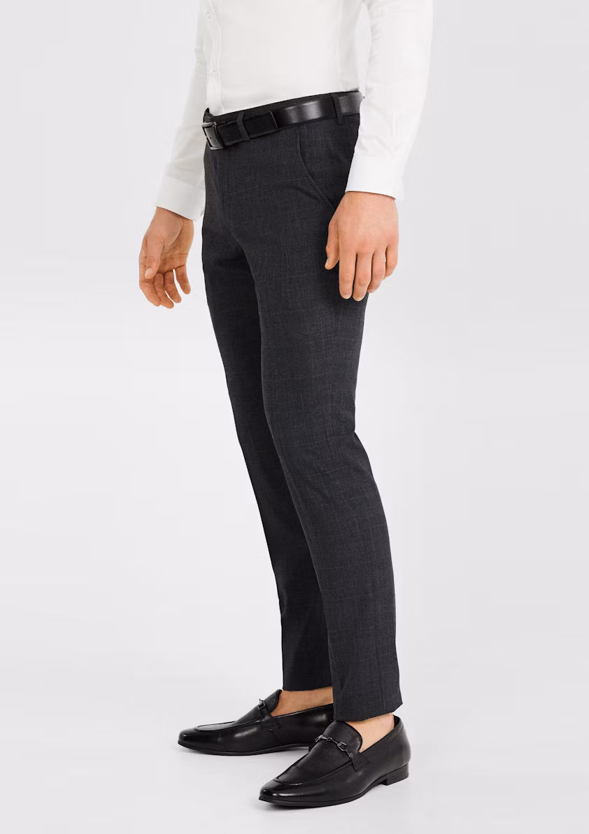 The Charcoal Precision Skinny Check Trousers offer a bold yet sophisticated take on modern menswear, designed for the contemporary man who embraces a sleek, tailored aesthetic with a touch of individuality. These trousers feature a skinny fit, closely contoured through the thigh and tapering tightly to the ankle, creating a sharp and streamlined silhouette. Adorned with a subtle check pattern in a versatile charcoal hue, they add a layer of texture and refinement, making them ideal for standing out in professional or smart-casual settings. The premium fabric blend incorporates stretch, ensuring comfort and flexibility for all-day wear, whether in the office, at semi-formal events, or during travel. Equipped with two side pockets, two back pockets, and a streamlined zip fly with a hook-and-bar closure, these trousers combine practicality with meticulous craftsmanship. Pair them with a tailored blazer for a polished, business-ready ensemble or style with a fitted shirt for a modern, refined look. Perfect for corporate environments, social gatherings, or any occasion demanding distinctive style and a close-fitting silhouette.