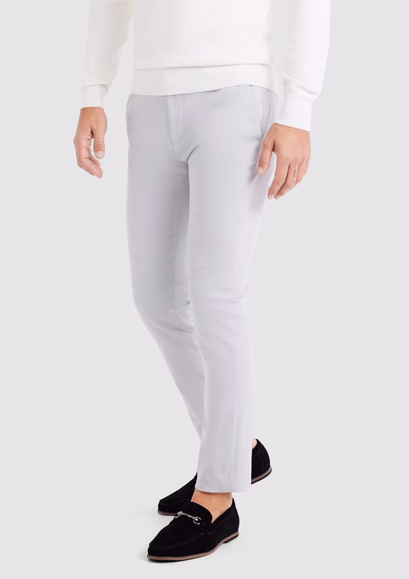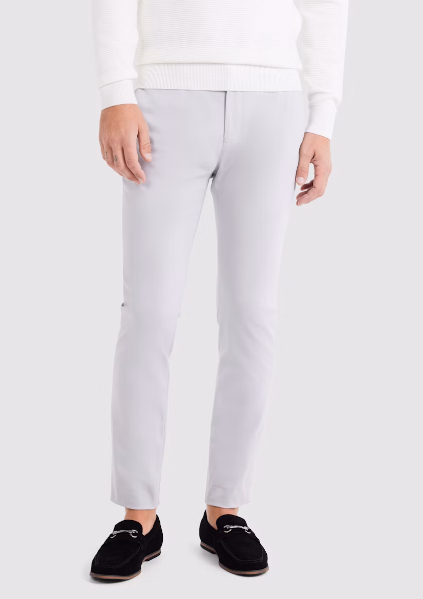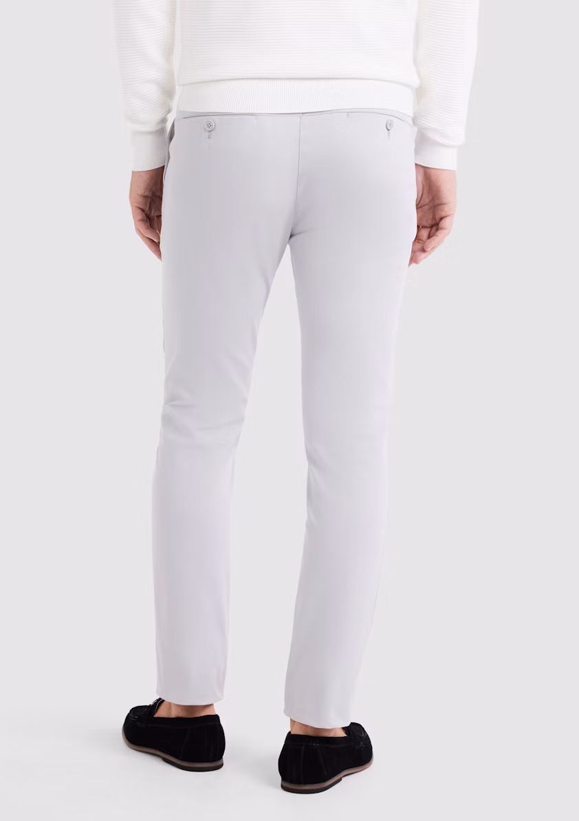 The Silver Velocity Slim Super-Stretch Trousers redefine modern comfort and style, crafted for the dynamic man who seeks a perfect blend of sophistication and functionality. These trousers feature a slim fit, expertly tailored to contour through the thigh and taper toward the ankle, delivering a sleek, contemporary silhouette that enhances any wardrobe. Presented in a versatile silver hue, they offer a fresh and polished aesthetic, ideal for transitioning from professional settings to smart-casual occasions. The super-stretch fabric blend, designed with crease-resistant properties, ensures exceptional flexibility and a pristine appearance, making these trousers perfect for long office hours, travel, or weekend events. Equipped with two side pockets, two back pockets, a rubber grip waistband for added comfort, and a streamlined zip fly with a hook-and-bar closure, they combine practicality with refined craftsmanship. Pair them with a long-sleeve shirt for a sharp, business-ready look or style with a casual polo for effortless weekend chic. Ideal for business casual environments, travel, or any scenario demanding both comfort and a sophisticated edge.